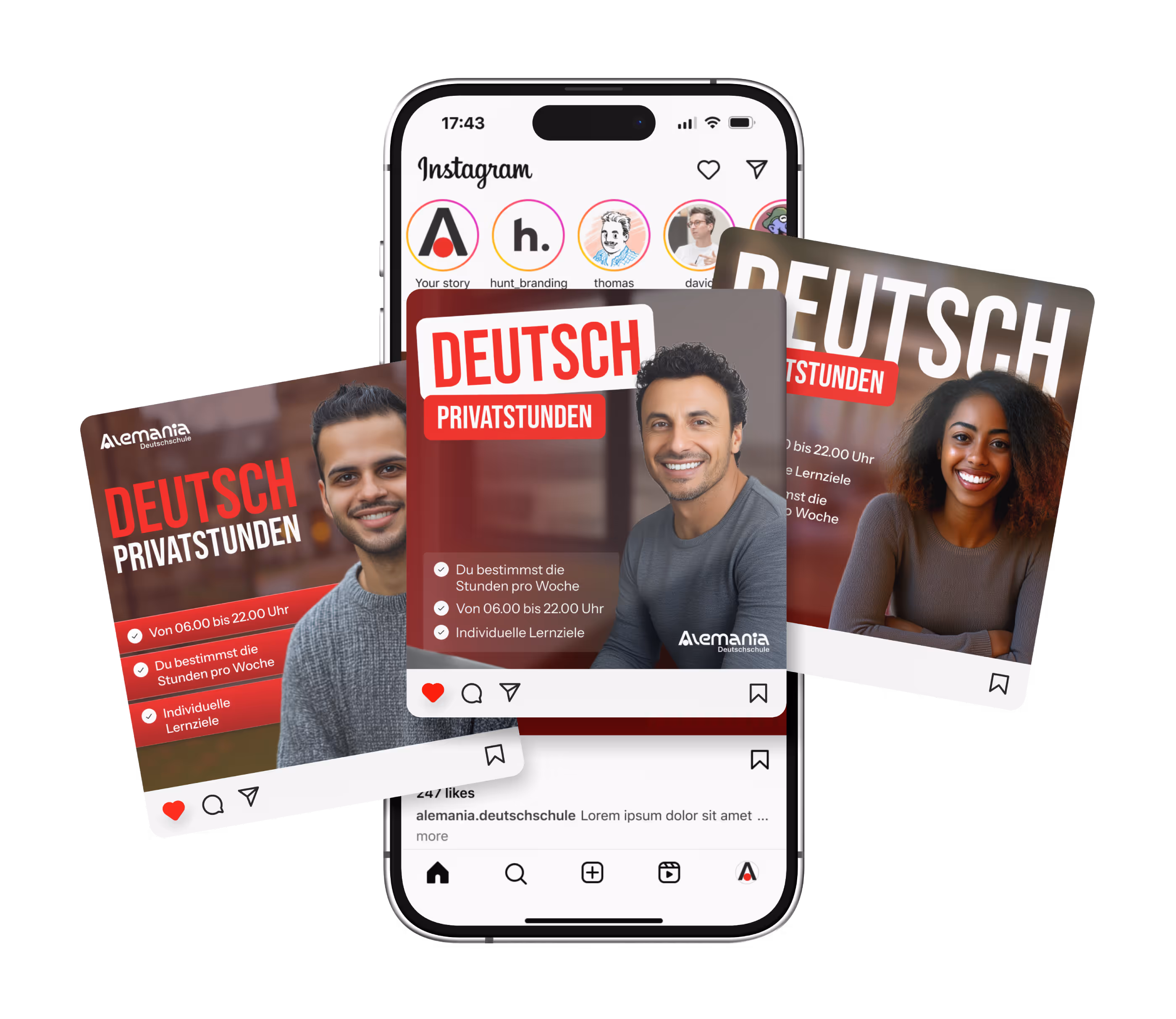 Alemania hatte als Sprachschule schon länger in Ads auf den sozialen Netzwerken und auf Google investiert. Damals waren sie als Deutschschule eine der ersten, die lustige Videos posteten und damit ihre Kund:innen begeisterten. Natürlich blieben sie damit nicht lang alleine und es musste ein neuer Plan her um weiterhin in der Top - Performance zu bleiben. Die internen Ressourcen waren begrenzt – insbesondere für die Erstellung neuer Werbemittel. Der Fokus lag bisher stark auf Social Media als primärem Conversion-Kanal.